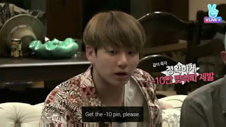 Jungkook “boleh aku membuat kesepakatan? Aku akan bertaruh makanku besok. Jika aku tidak mendapat 30$. Aku tidak akan memakan apapun besok. jika aku dapat menjatuhkan pin 30$, aku hanya akan mengambil 5$ saja”