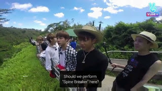 Jimin mau selfie, dia minta tolong Jungkook buat click tombolnya soalnya jari dia lagi diperban (ini gue gak tau gaes si Jimin kenapa :”)
