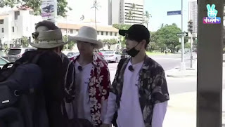 Jhope jawab ‘acai bowl’, taehyung jawab ‘ahi poke’, rapmon jawab ‘loco moco! Makanan apa yang terkenal di Honolulu?’ petugasnya jawab Waikiki (Rapmon ganteng parahhh)