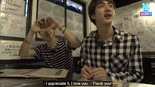 Jin “yaaaah kau sangat tidak dipercaya.kita sudah tinggal 5 tahun lebih. Bahkan 7 tahun!”
