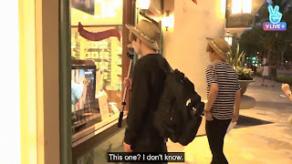 Jungkook lagi ditoko souvenir “kita harus mengecek uang kita dulu untuk membeli souvenir seperti ini”